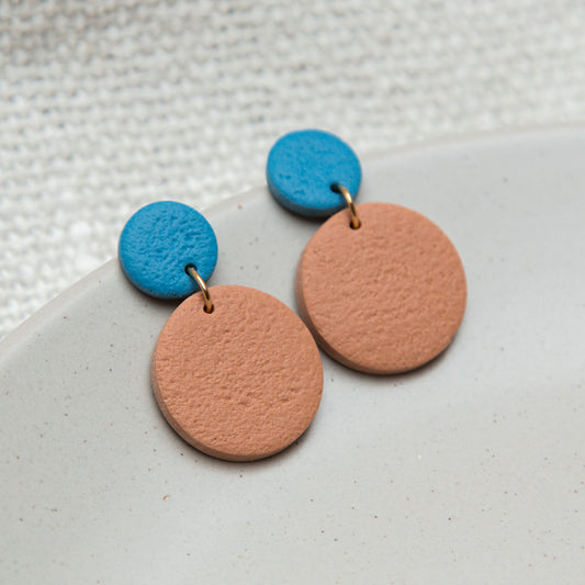 Ohrringe "Pure Dots" Kornblumenblau & Haselnuss