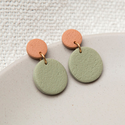 Ohrringe "Pure Dots" Salbeigrün & Haselnuss
