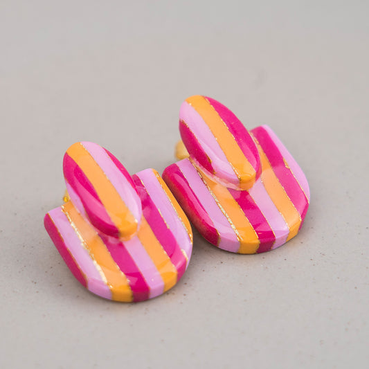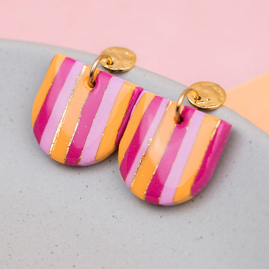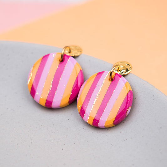 Ohrringe "Sunset Pop" Hotpink, Orange, Rosé - gestreift, rund