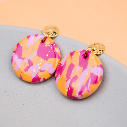 Ohrringe "Sunset Pop" Hotpink, Orange, Rosé - gemustert, rund