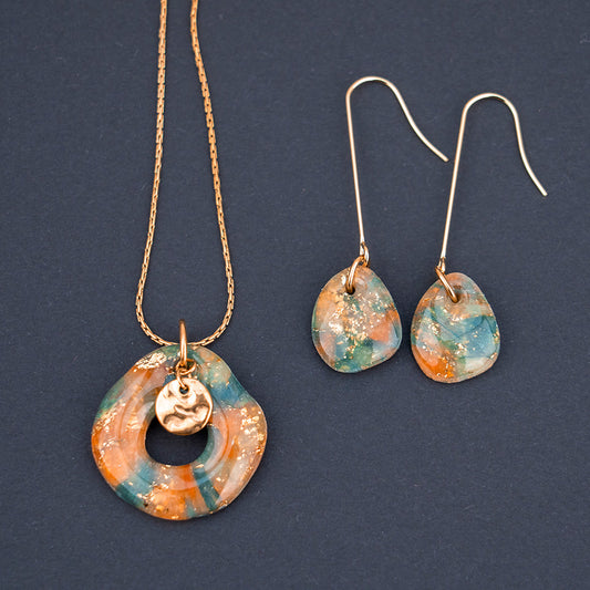 Die Kollektion Geometric verbindet klare Hexagone und sanfte Kreise zu modernen, minimalistischen Designs. Jedes Stück wird von mir im Ruhrgebiet in liebevoller Handarbeit gefertigt und ist ein echtes Unikat.