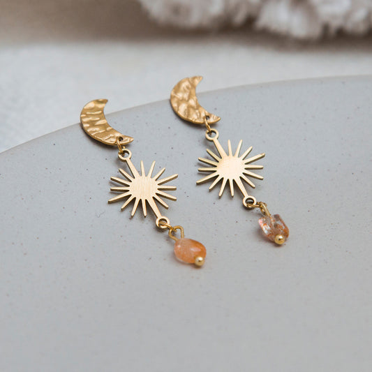 Ohrringe - Mondstecker "Celestial" mit Naturstein - goldfarben