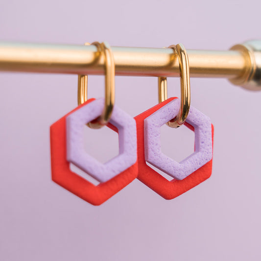 Creolen "Hexa Bold" in Flieder & Klatschmohnrot - Hexagon