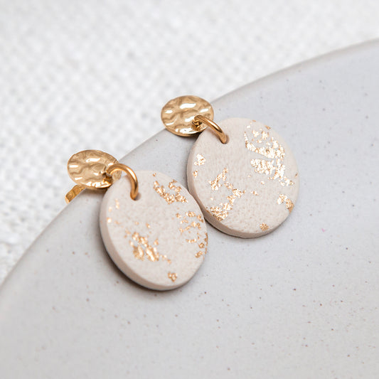Ohrringe rund beige und goldfarben mit Stecker in Hammerschlag-Optik