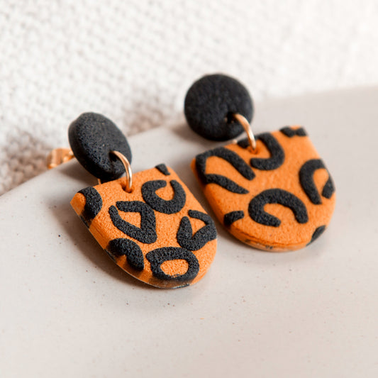 Ohrringe Leo - Stecker - schwarz & orange - mittel