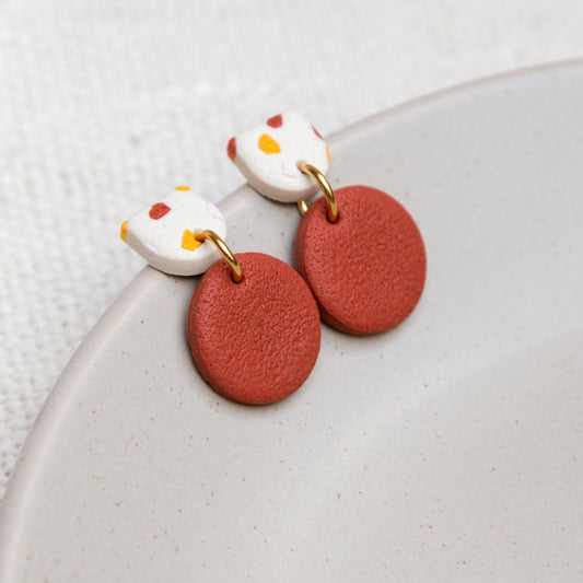 Ohrringe Stecker Terrazzo bunt rotbraun rund