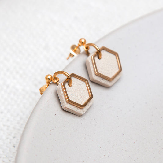 Ohrringe Stecker Hexagon - beige goldfarben