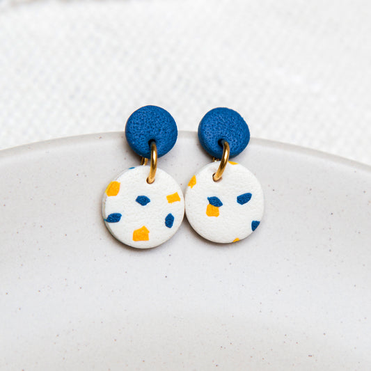 Ohrringe "Elena" - kleine runde Ohrringe mit Terrazzo in blau gelb beige