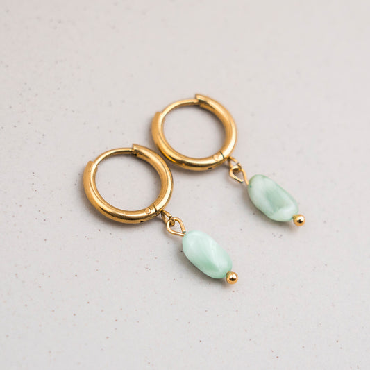 Ohrringe - Creolen aus Edelstahl in goldfarben mit grünen Natursteinen