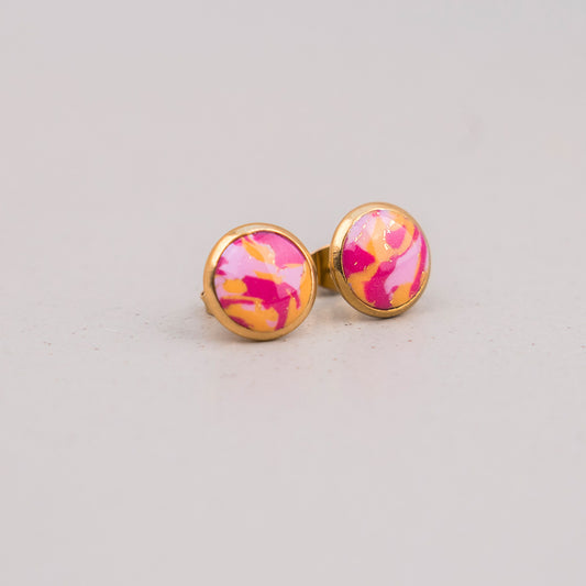 Ohrringe "Sunset Pop" Hotpink, Orange, Rosé - Stecker gemustert