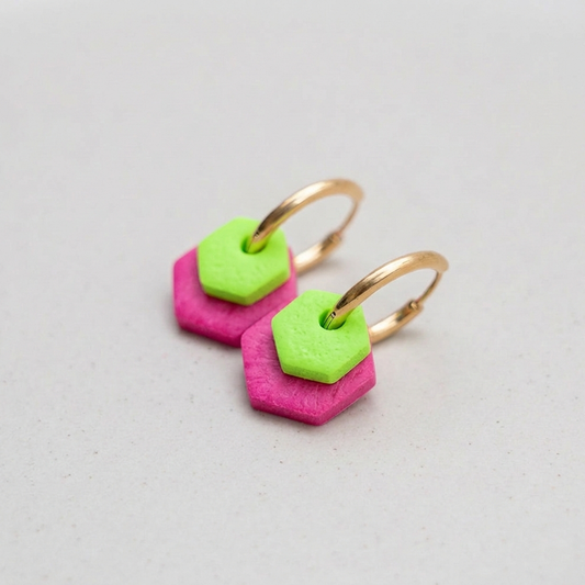 Creolen "Hexa Fine" in Hotpink & Neongrün