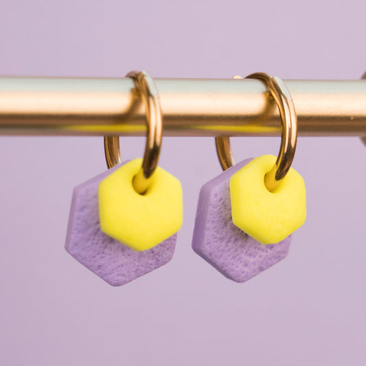 Creolen "Hexa Bold" in Flieder & Neongelb - Hexagon