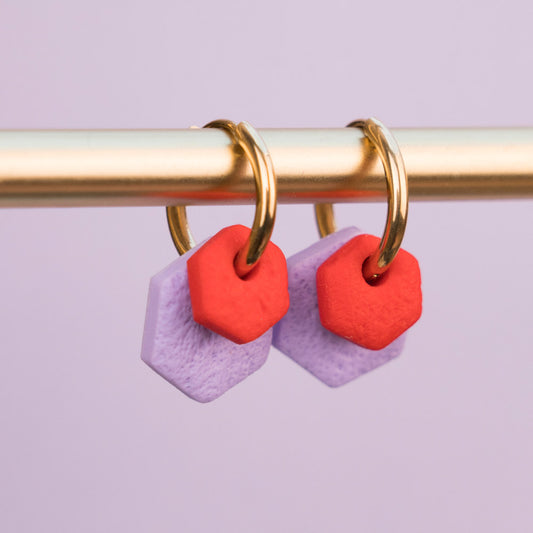 Creolen "Hexa Bold" in Flieder & Klatschmohnrot - Hexagon