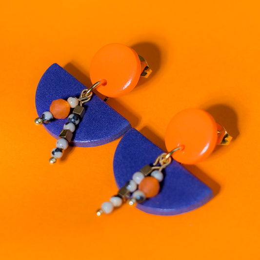 Ohrringe - GLÜCKSPILZ - Electric Orange & Deep Purple - Dalmatiner-Jaspis