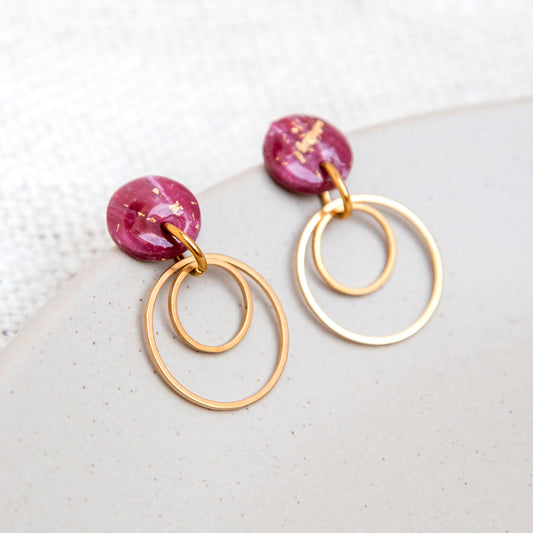 Ohrringe "Zauberglöckchen" V - Element 2 Ringe - Stecker - magenta pink