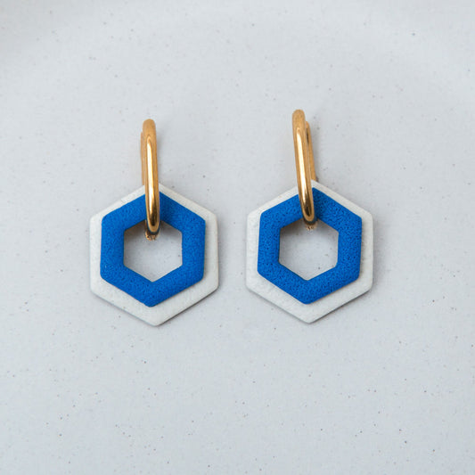 Ohrringe Creolen "Gold & Eisblau" Hexagon
