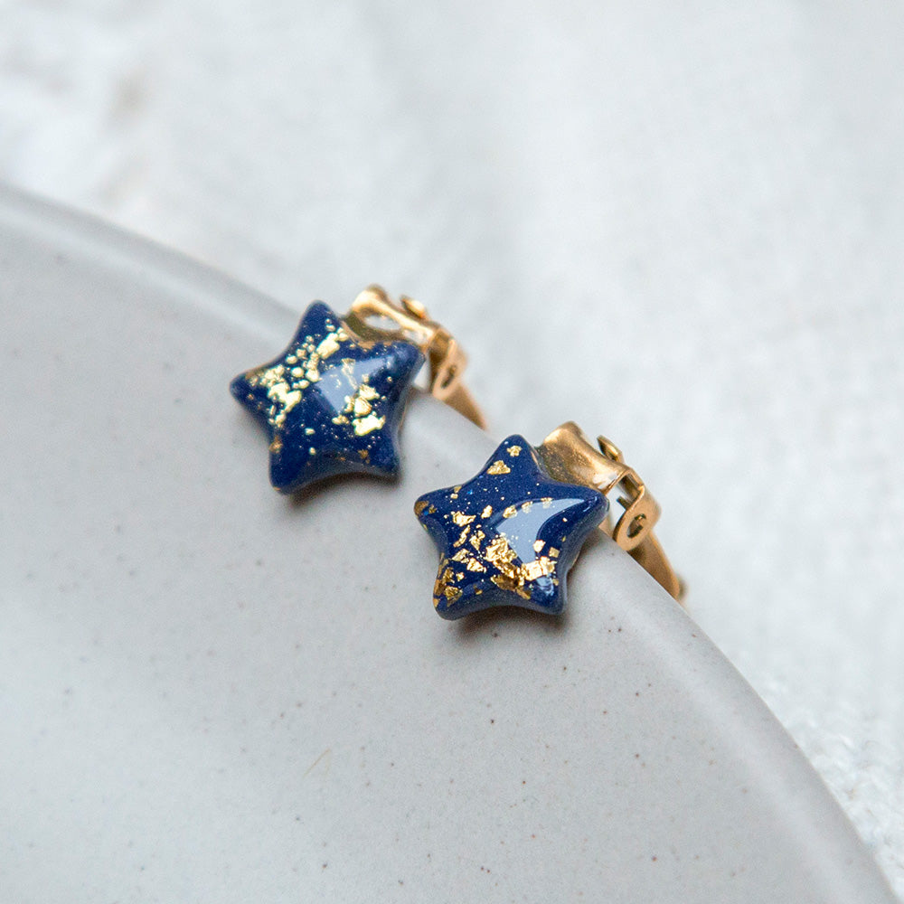 Ohrringclips "Sterne" dunkelblau mit goldfarbenen Flakes - Ohrringe ohne Löcher