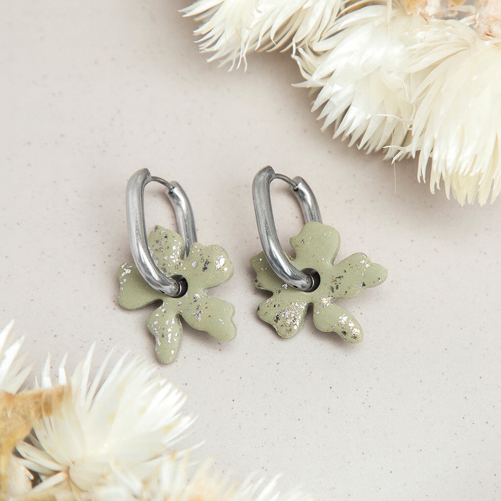 Ohrringe "Chunky Bloom" ✿ Salbeigrün I silberfarbene Akzente