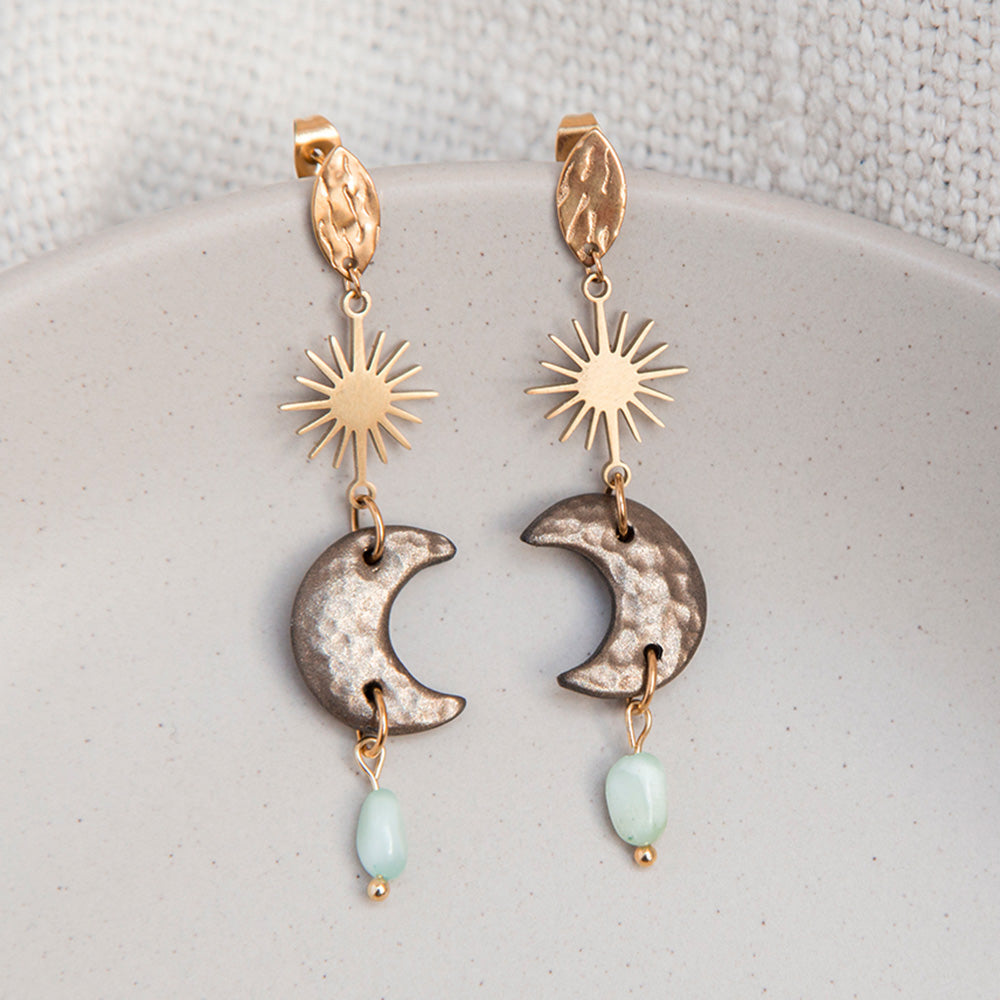 Ohrringe - Creolen "Celestial" bronzefarben mit Naturstein