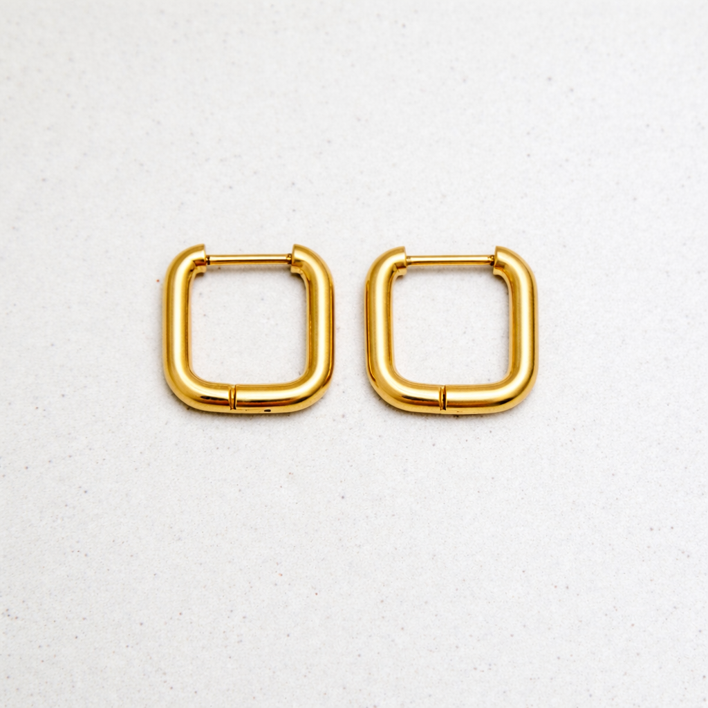 Ohrringe - Creolen Quadrat- Edelstahl in goldfarben