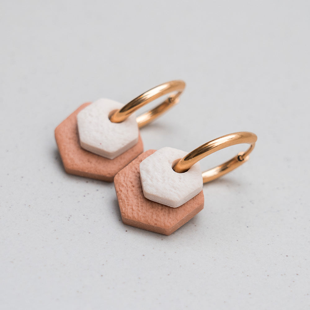 Creolen "Hexa Fine" in Sand & Haselnuss