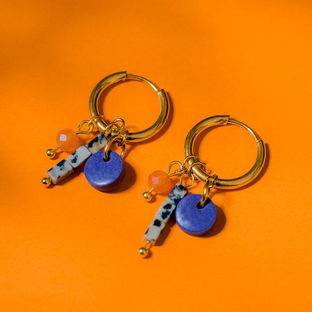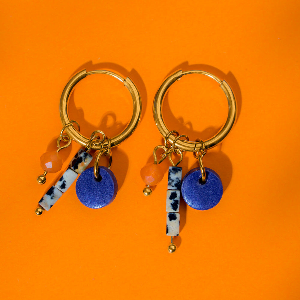 Ohrringe - GLÜCKSPILZ - Creolen mit Dalmatinerstein-Anhängern & Rotem Aventurin