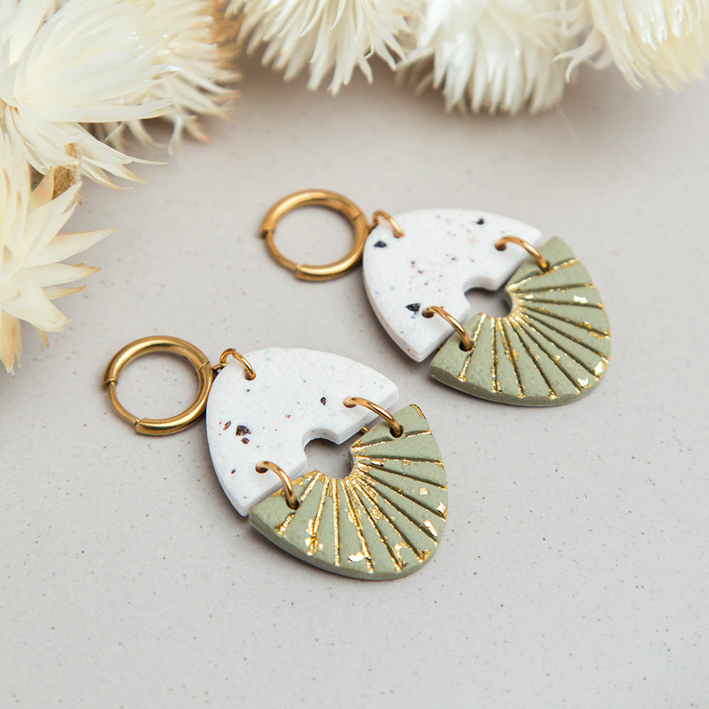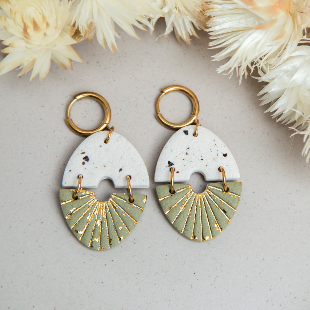 Ohrringe "Golden Autumn" Salbeigrün & Beige Brew