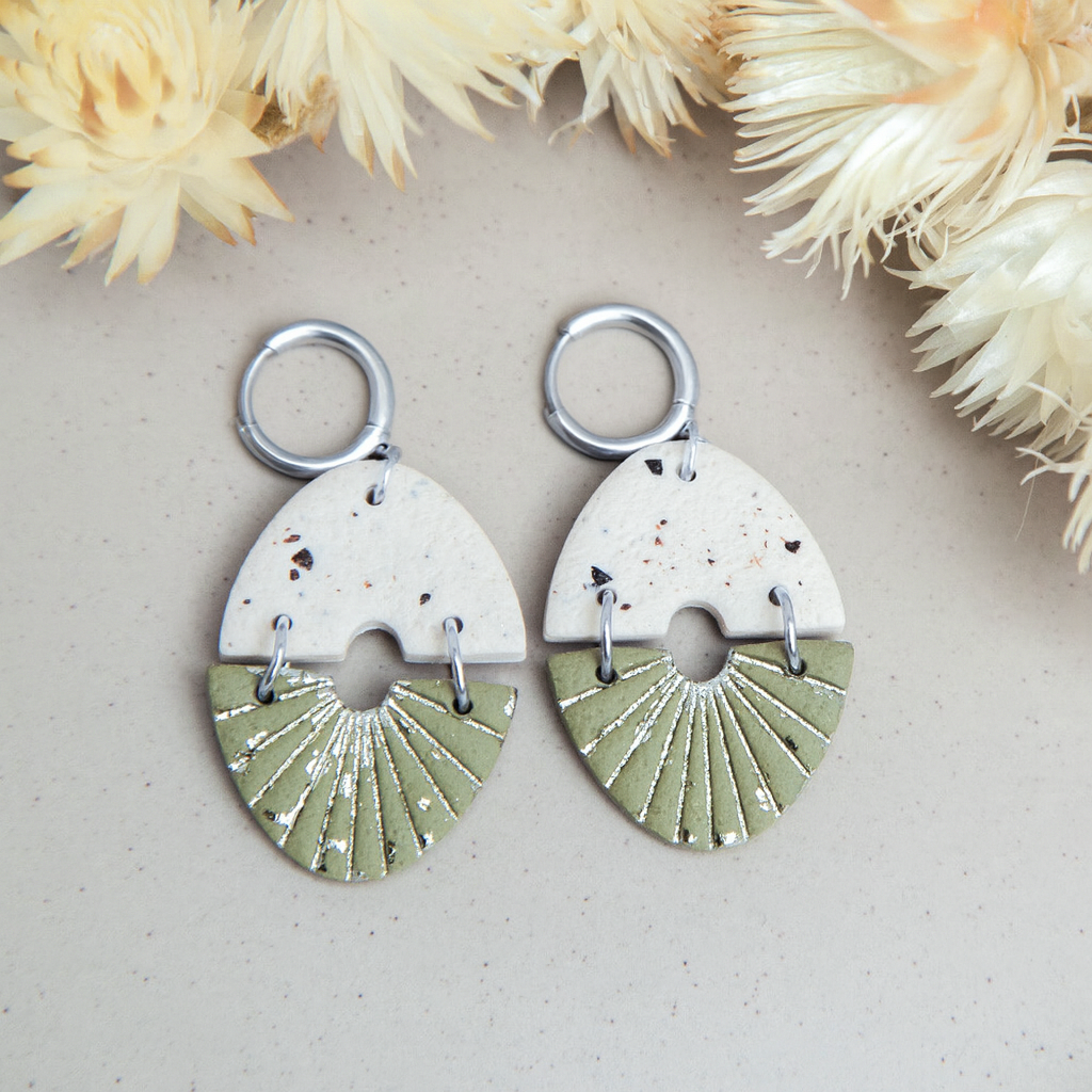 Ohrringe "Silver Autumn" Salbeigrün & Beige Brew