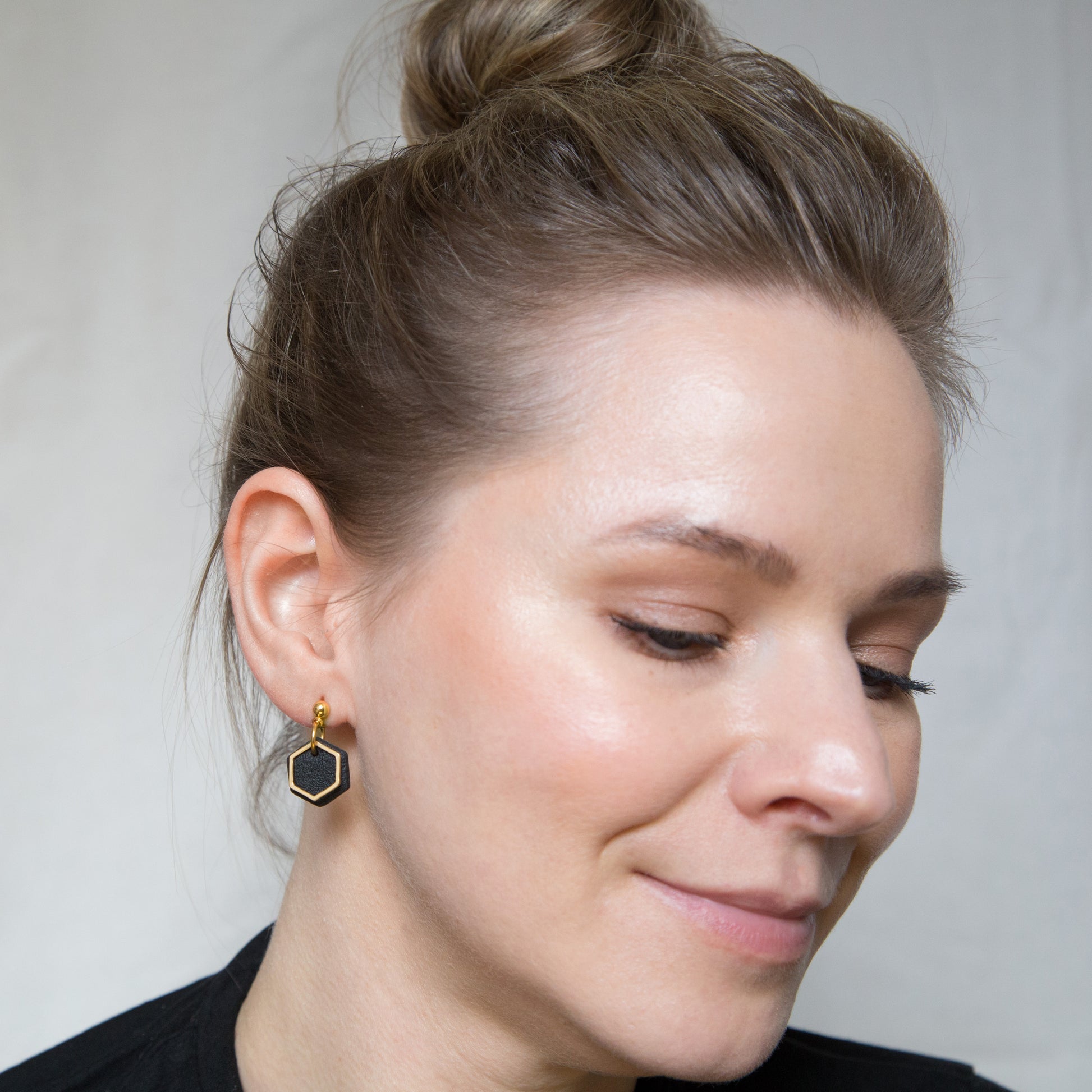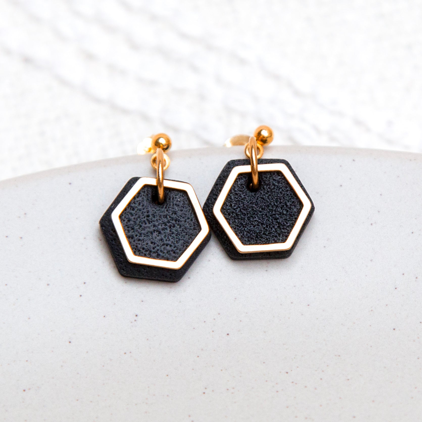 Ohrringe Stecker Hexagon - schwarz goldfarben