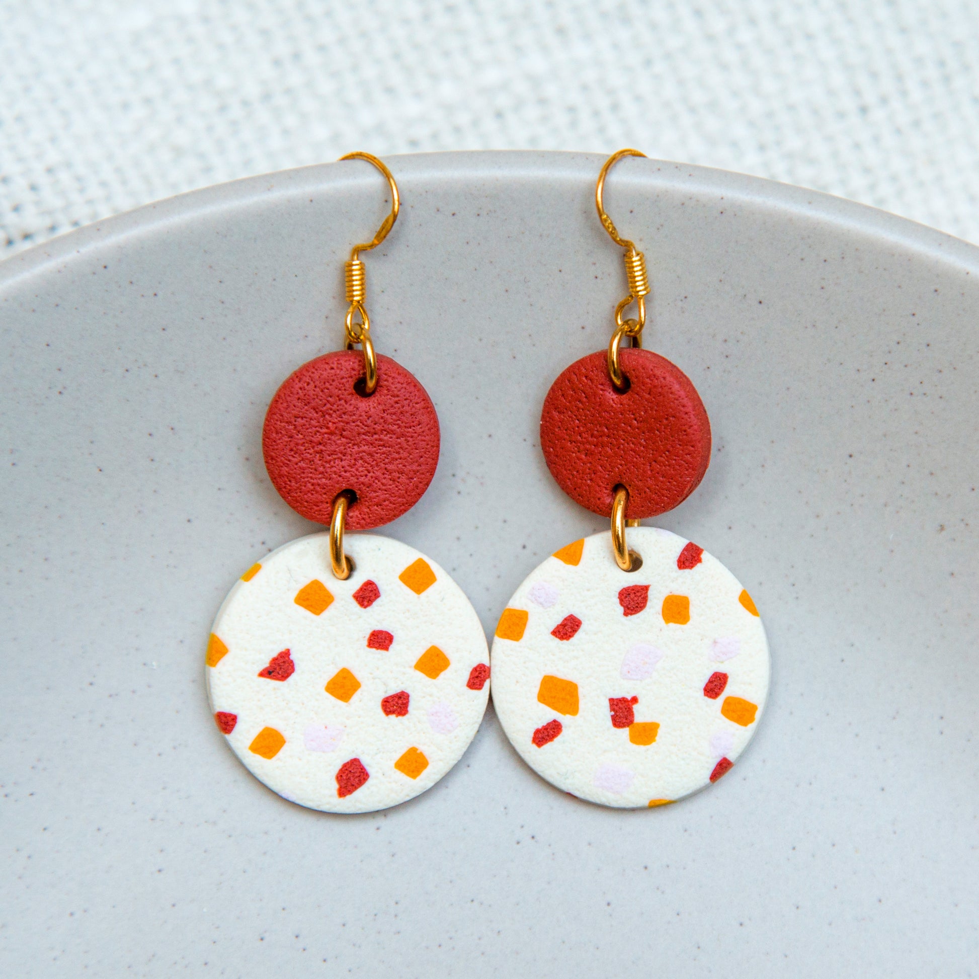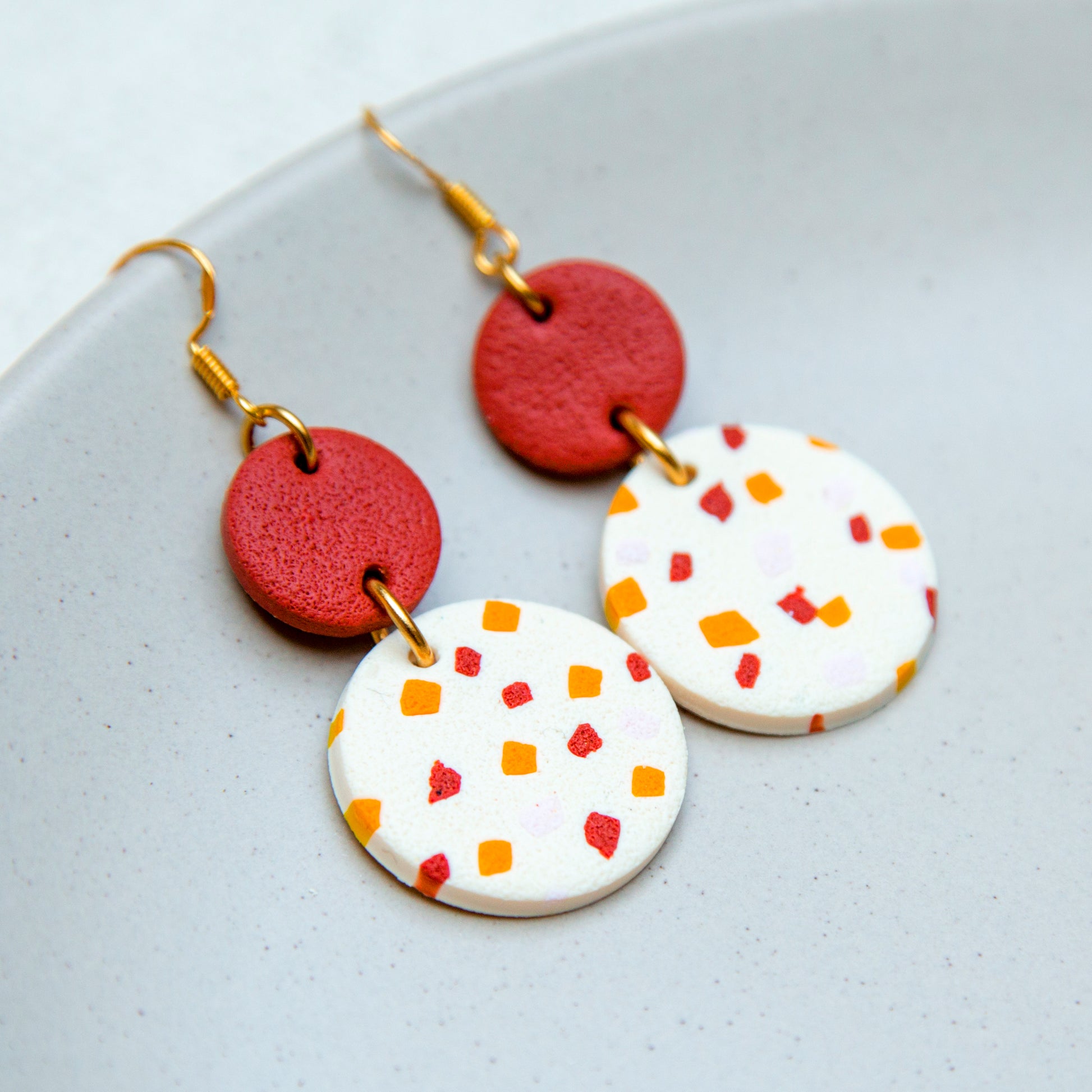 Ohrringe Terrazzo Hänger bunt rot gelb rosa