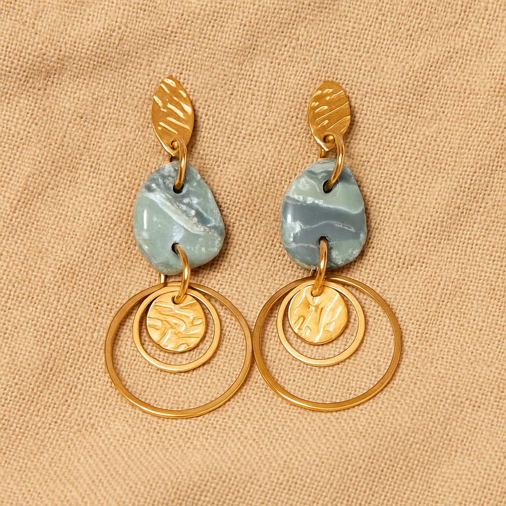Ohrringe "Verborgene Kraft" grün mit Plättchen in Hammerschlagoptik