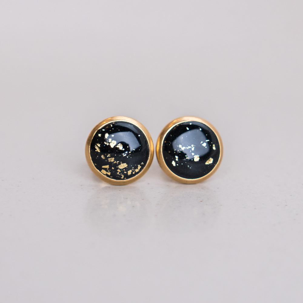 Set aus Kette & Ohrringsteckern - Tiefschwarz mit goldfarbenen Flakes